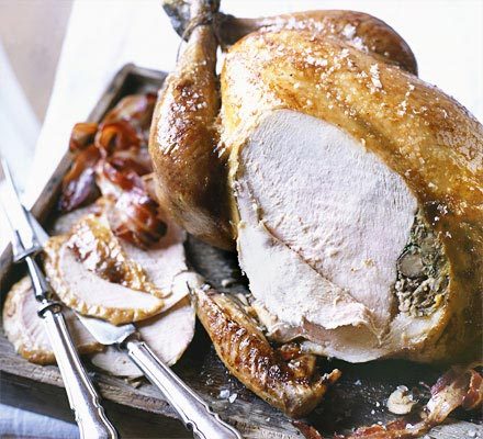 Chestnut Stuffing (600g). Perfect for turkeys, geese, or chicken. Snap-frozen for freshness. Made with pork/veal, chestnuts, cream, eggs, and herbs.