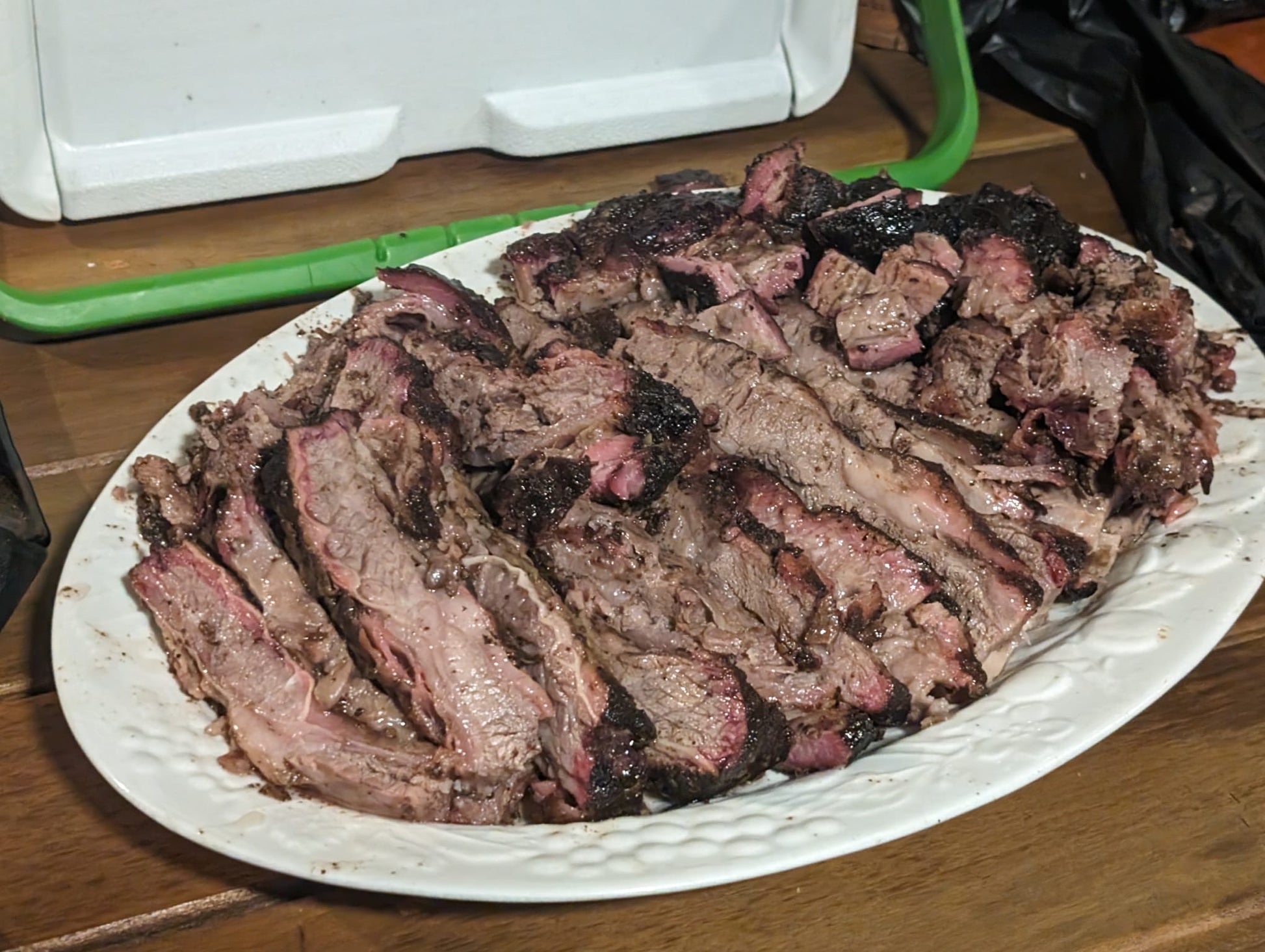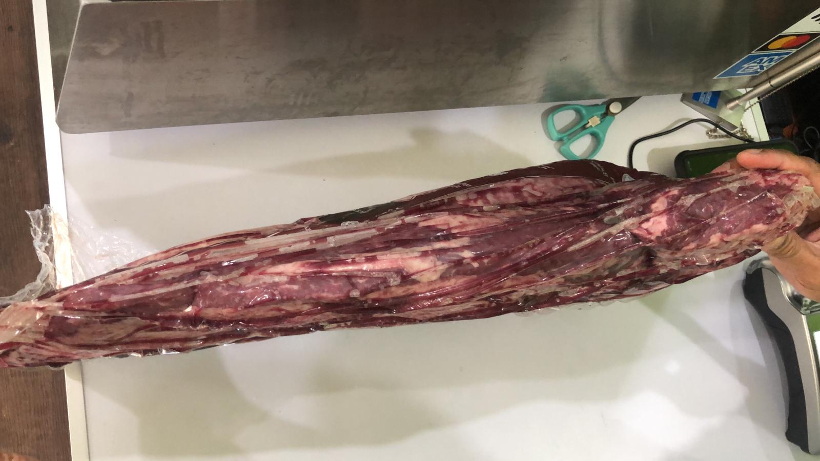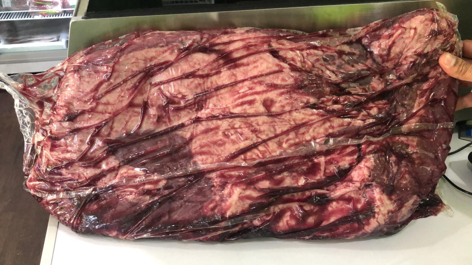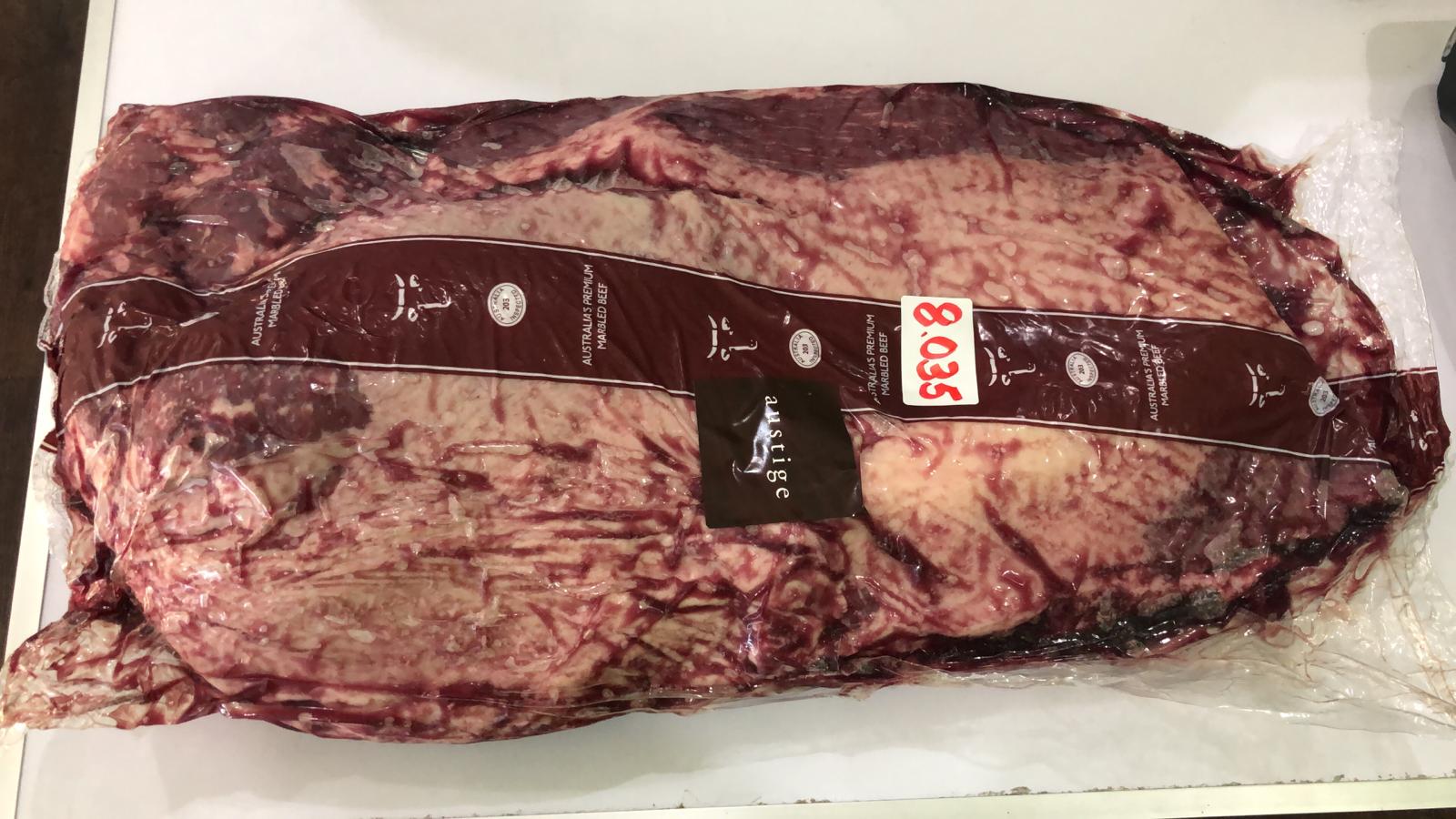 PE brisket which has both the Point and the Flat, same packing spec as a US Packer brisket. It's untrimmed with a layer of fat.