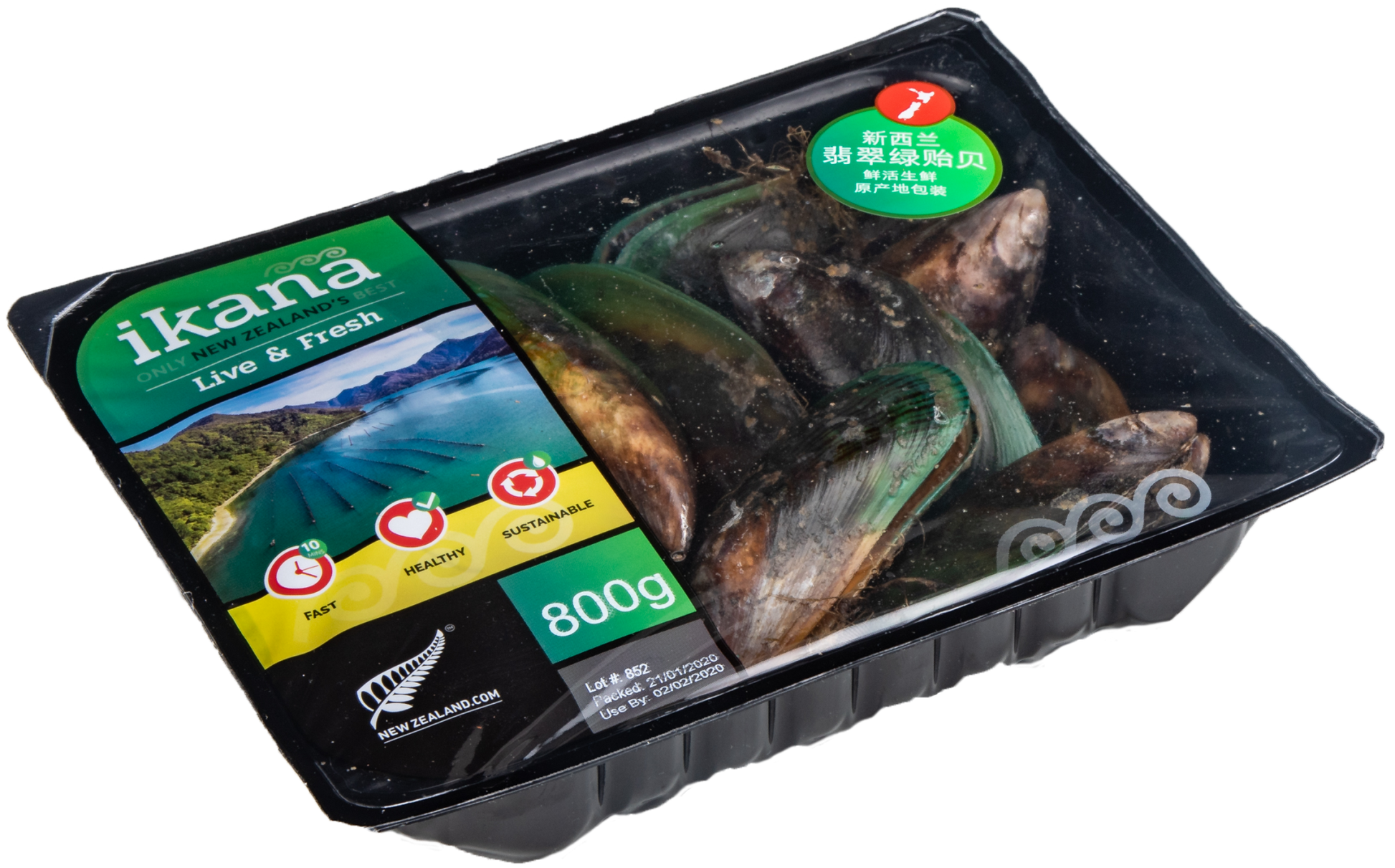 New Zealand Greenshell Mussels (Full Shell) 800g, price/pack, frozen