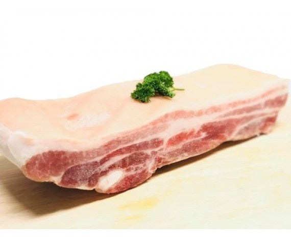 Pork belly Roast (800g) is an inexpensive, fatty cut of meat from the underside of the pig near the loin. Spareribs also come from this area. The Pork belly Roast is in a 1kg pack with the skin on.