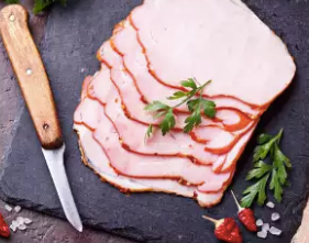 Smoked ham is a popular serving of meat, cut from the pork leg. It is cured with salt and spices, then subjected to slow and steady heat for varying periods. The smoking is carried out in a special chamber called a kiln.