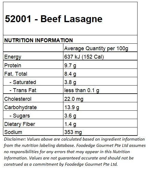 Beef Lasagna (Halal), 250g, frozen