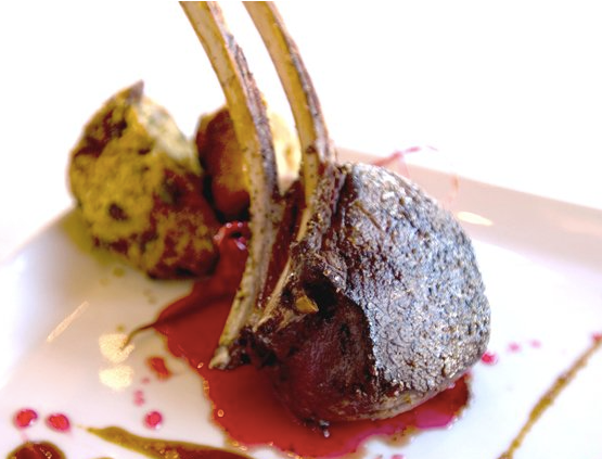 Cocoa-Dusted Venison Rack, Parsnip Puree with Red Wine and Cassis Sauce