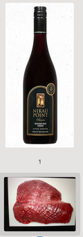 Grass Fed Venison (Red Deer) Rump with a bottle of Pinot Noir (Black Cottage), Marlborough, 2020 from New Zealand.