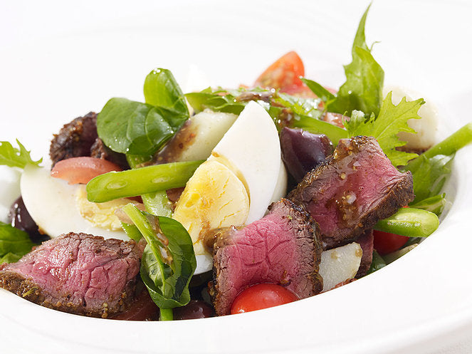 Grill, rest, and slice thinly to serve. Best cooked no more than medium rare.
