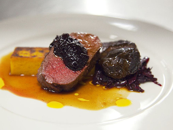 Venison Sirloins & Huckleberry Balsamic Sauce
